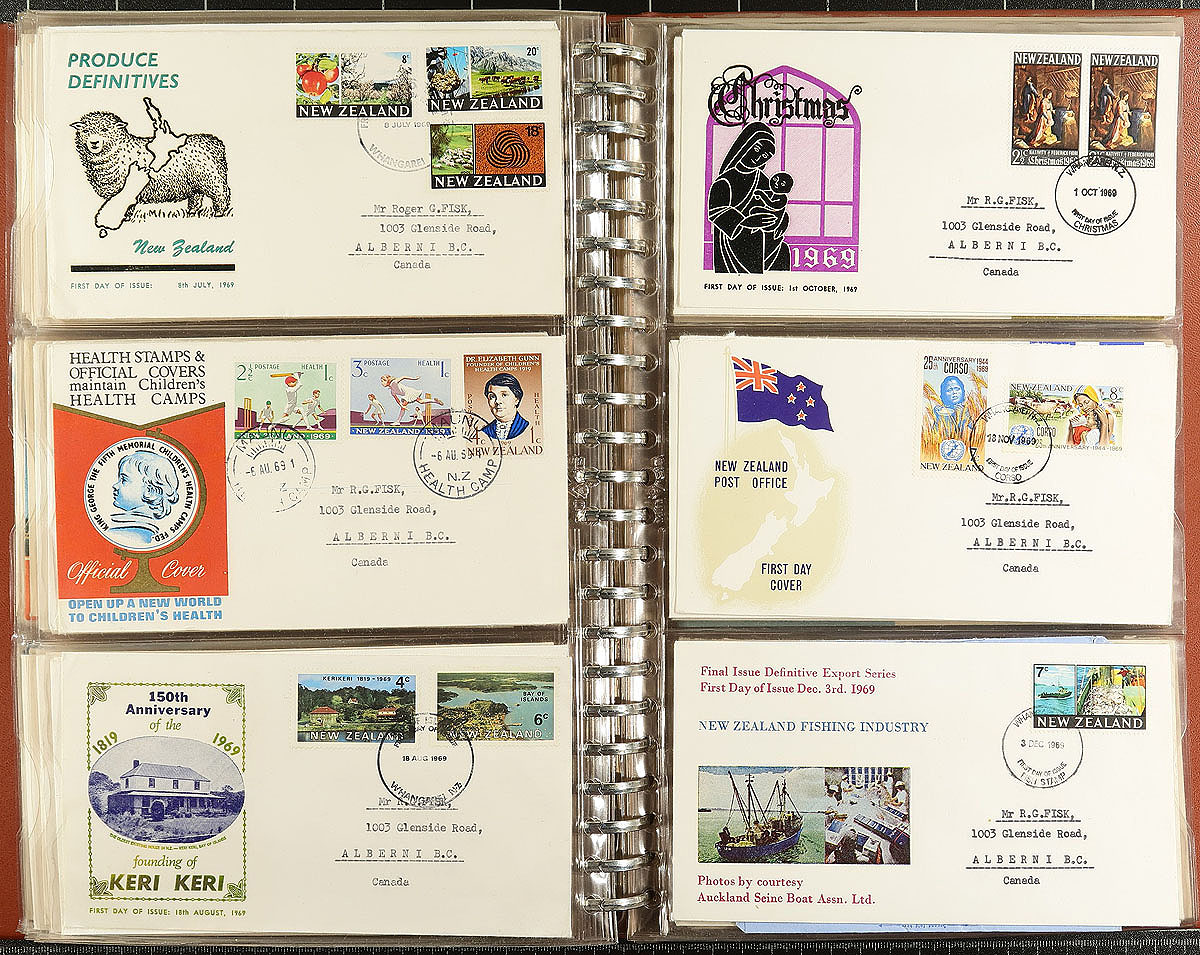 Nice collection of 186 first day covers, 1938-1979, mostly with privately added cachets and the majority are addressed. Includes a number of health issues with a number of "Camp" cancels. These private cachets are increasingly being documented and catalogued, some of which are surprisingly desirable. A very clean, lightly duplicated, group which are hosted in a pair of first day cover albums. Estimate =