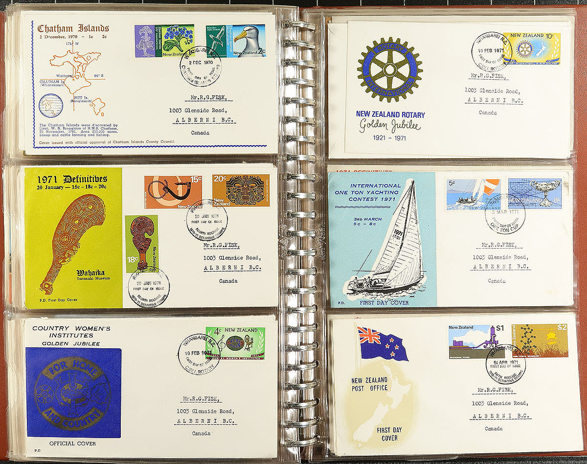 Nice collection of 186 first day covers, 1938-1979, mostly with privately added cachets and the majority are addressed. Includes a number of health issues with a number of "Camp" cancels. These private cachets are increasingly being documented and catalogued, some of which are surprisingly desirable. A very clean, lightly duplicated, group which are hosted in a pair of first day cover albums. Estimate =