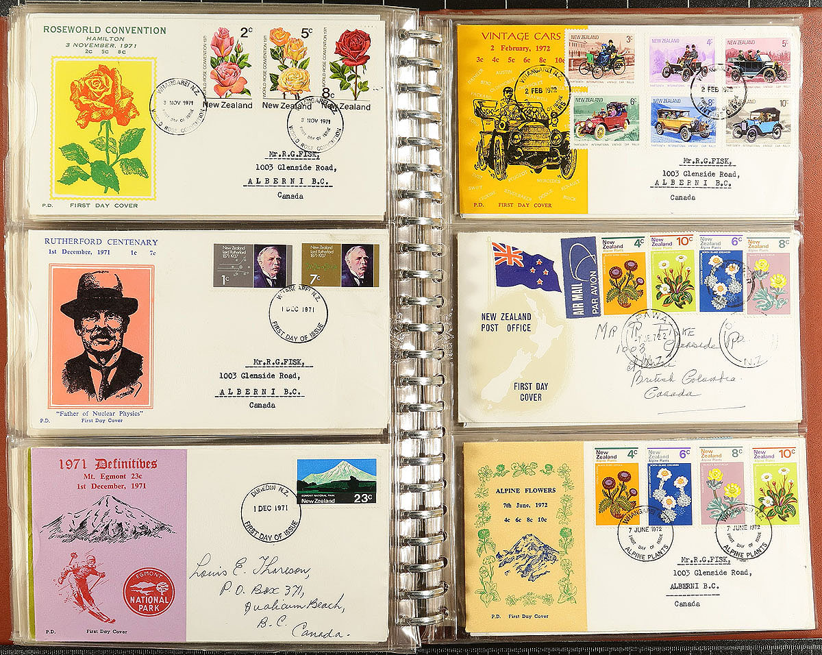 Nice collection of 186 first day covers, 1938-1979, mostly with privately added cachets and the majority are addressed. Includes a number of health issues with a number of "Camp" cancels. These private cachets are increasingly being documented and catalogued, some of which are surprisingly desirable. A very clean, lightly duplicated, group which are hosted in a pair of first day cover albums. Estimate =