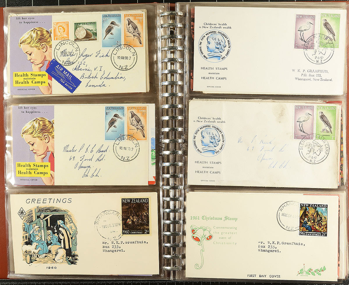 Nice collection of 186 first day covers, 1938-1979, mostly with privately added cachets and the majority are addressed. Includes a number of health issues with a number of "Camp" cancels. These private cachets are increasingly being documented and catalogued, some of which are surprisingly desirable. A very clean, lightly duplicated, group which are hosted in a pair of first day cover albums. Estimate =