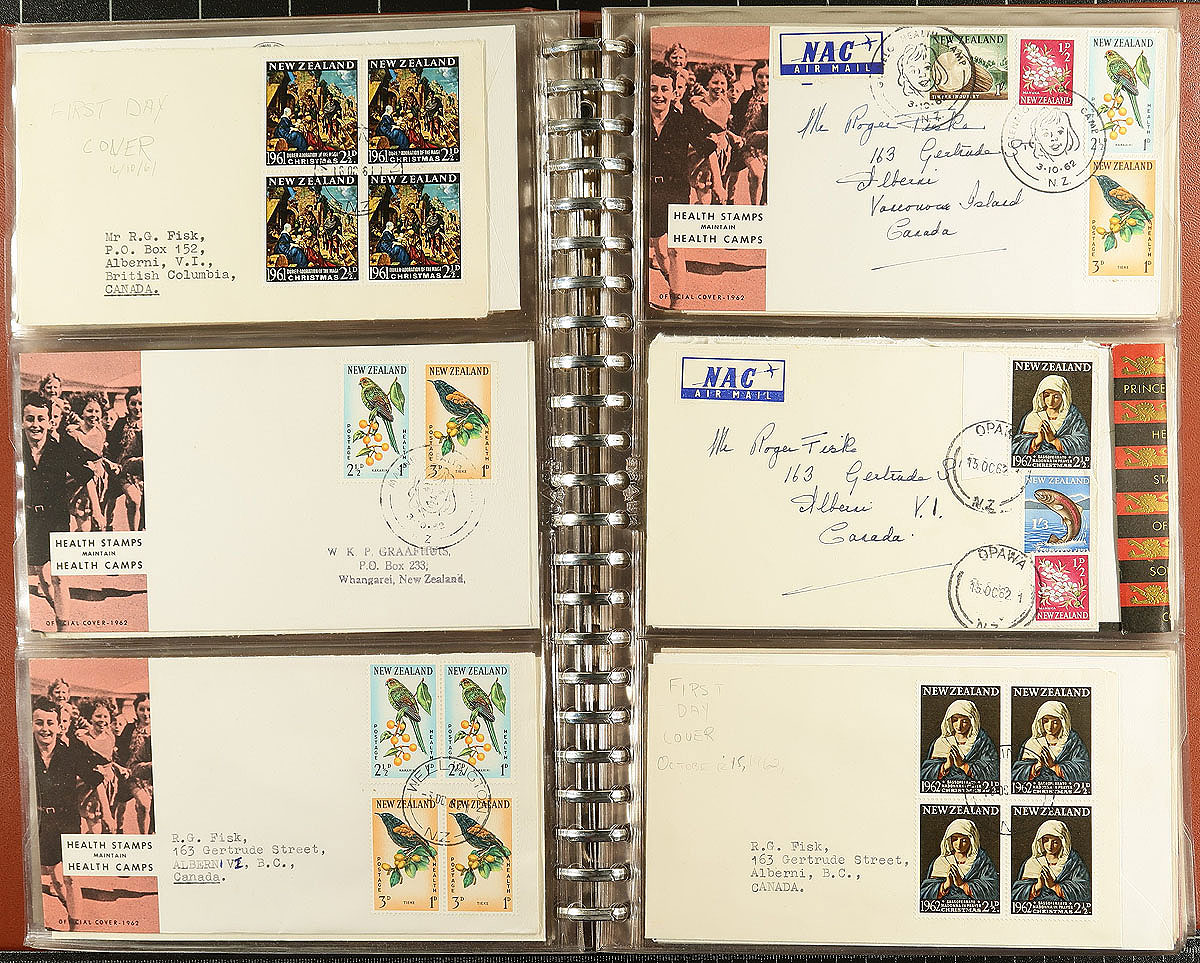 Nice collection of 186 first day covers, 1938-1979, mostly with privately added cachets and the majority are addressed. Includes a number of health issues with a number of "Camp" cancels. These private cachets are increasingly being documented and catalogued, some of which are surprisingly desirable. A very clean, lightly duplicated, group which are hosted in a pair of first day cover albums. Estimate =