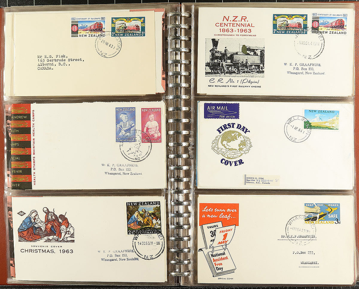 Nice collection of 186 first day covers, 1938-1979, mostly with privately added cachets and the majority are addressed. Includes a number of health issues with a number of "Camp" cancels. These private cachets are increasingly being documented and catalogued, some of which are surprisingly desirable. A very clean, lightly duplicated, group which are hosted in a pair of first day cover albums. Estimate =