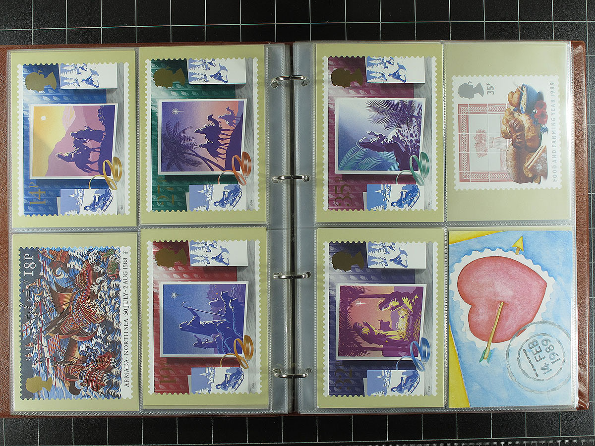 First Day Cover / PHQ Card collection 1966-2008. An attractive Elizabethan group of 310 First Day Covers and 388 PHQ neatly arranged in 8 Post Office deluxe padded FDC / Postcard albums. A nice mix of issues, including some better early FDC with privately produced cachets and progressing to the many of the colourful sets / souvenir sheets issued in the 21st century. The PHQ cards (issued by the post office, depicting the upcoming stamp issue) are a much more complete and more modern selection than we usually see. Get your specialized catalogue ready, as the combined value of this lot will start to soar as you add it up. Estimate =