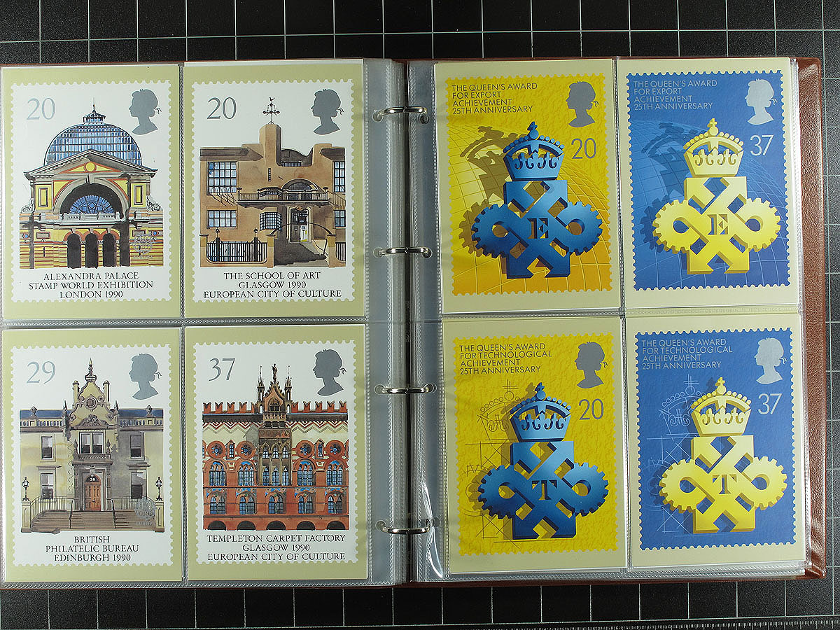 First Day Cover / PHQ Card collection 1966-2008. An attractive Elizabethan group of 310 First Day Covers and 388 PHQ neatly arranged in 8 Post Office deluxe padded FDC / Postcard albums. A nice mix of issues, including some better early FDC with privately produced cachets and progressing to the many of the colourful sets / souvenir sheets issued in the 21st century. The PHQ cards (issued by the post office, depicting the upcoming stamp issue) are a much more complete and more modern selection than we usually see. Get your specialized catalogue ready, as the combined value of this lot will start to soar as you add it up. Estimate =