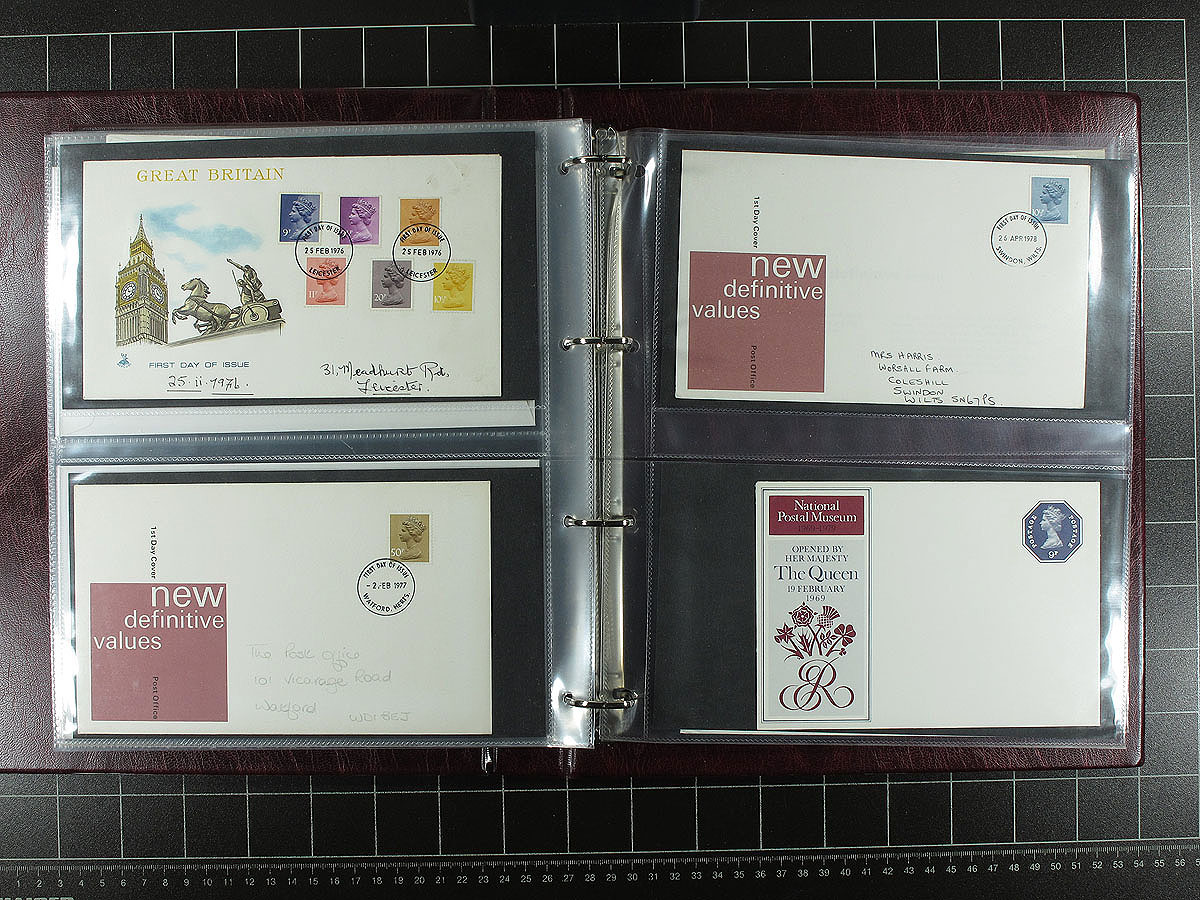 First Day Cover / PHQ Card collection 1966-2008. An attractive Elizabethan group of 310 First Day Covers and 388 PHQ neatly arranged in 8 Post Office deluxe padded FDC / Postcard albums. A nice mix of issues, including some better early FDC with privately produced cachets and progressing to the many of the colourful sets / souvenir sheets issued in the 21st century. The PHQ cards (issued by the post office, depicting the upcoming stamp issue) are a much more complete and more modern selection than we usually see. Get your specialized catalogue ready, as the combined value of this lot will start to soar as you add it up. Estimate =