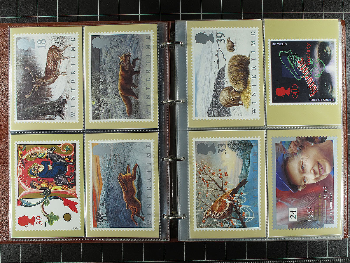 First Day Cover / PHQ Card collection 1966-2008. An attractive Elizabethan group of 310 First Day Covers and 388 PHQ neatly arranged in 8 Post Office deluxe padded FDC / Postcard albums. A nice mix of issues, including some better early FDC with privately produced cachets and progressing to the many of the colourful sets / souvenir sheets issued in the 21st century. The PHQ cards (issued by the post office, depicting the upcoming stamp issue) are a much more complete and more modern selection than we usually see. Get your specialized catalogue ready, as the combined value of this lot will start to soar as you add it up. Estimate =