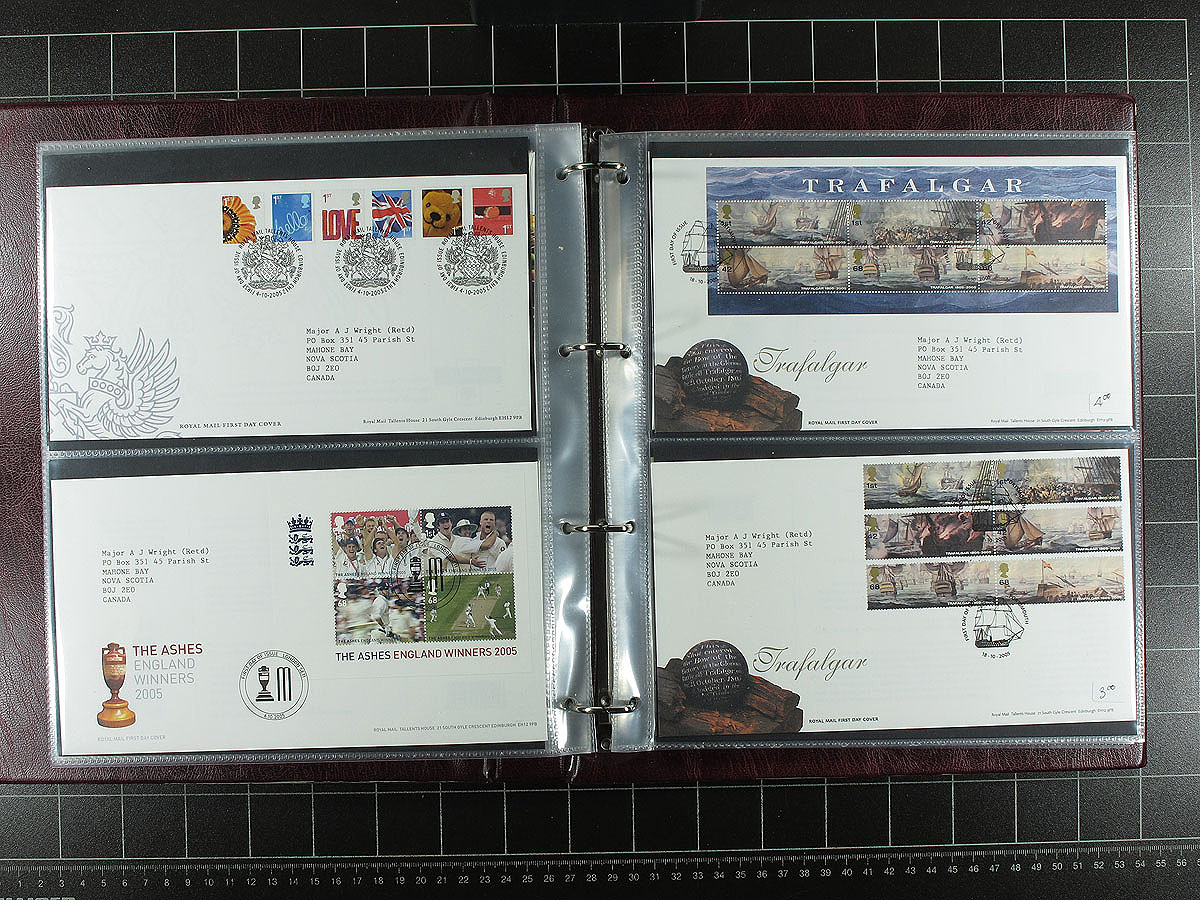 First Day Cover / PHQ Card collection 1966-2008. An attractive Elizabethan group of 310 First Day Covers and 388 PHQ neatly arranged in 8 Post Office deluxe padded FDC / Postcard albums. A nice mix of issues, including some better early FDC with privately produced cachets and progressing to the many of the colourful sets / souvenir sheets issued in the 21st century. The PHQ cards (issued by the post office, depicting the upcoming stamp issue) are a much more complete and more modern selection than we usually see. Get your specialized catalogue ready, as the combined value of this lot will start to soar as you add it up. Estimate =