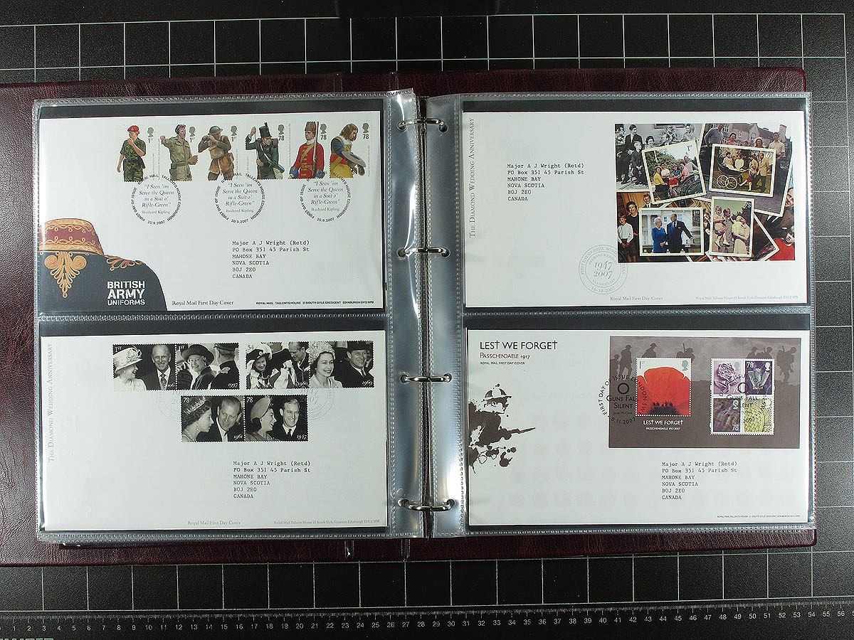First Day Cover / PHQ Card collection 1966-2008. An attractive Elizabethan group of 310 First Day Covers and 388 PHQ neatly arranged in 8 Post Office deluxe padded FDC / Postcard albums. A nice mix of issues, including some better early FDC with privately produced cachets and progressing to the many of the colourful sets / souvenir sheets issued in the 21st century. The PHQ cards (issued by the post office, depicting the upcoming stamp issue) are a much more complete and more modern selection than we usually see. Get your specialized catalogue ready, as the combined value of this lot will start to soar as you add it up. Estimate =