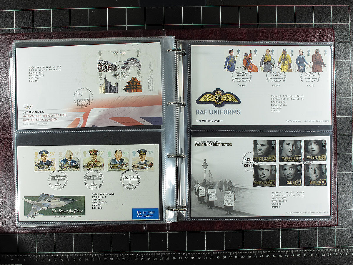 First Day Cover / PHQ Card collection 1966-2008. An attractive Elizabethan group of 310 First Day Covers and 388 PHQ neatly arranged in 8 Post Office deluxe padded FDC / Postcard albums. A nice mix of issues, including some better early FDC with privately produced cachets and progressing to the many of the colourful sets / souvenir sheets issued in the 21st century. The PHQ cards (issued by the post office, depicting the upcoming stamp issue) are a much more complete and more modern selection than we usually see. Get your specialized catalogue ready, as the combined value of this lot will start to soar as you add it up. Estimate =