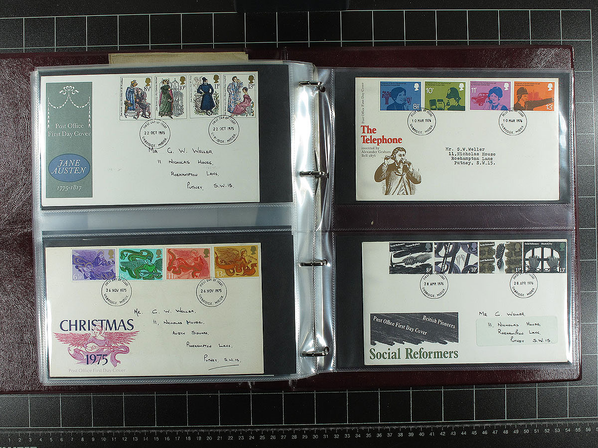 First Day Cover / PHQ Card collection 1966-2008. An attractive Elizabethan group of 310 First Day Covers and 388 PHQ neatly arranged in 8 Post Office deluxe padded FDC / Postcard albums. A nice mix of issues, including some better early FDC with privately produced cachets and progressing to the many of the colourful sets / souvenir sheets issued in the 21st century. The PHQ cards (issued by the post office, depicting the upcoming stamp issue) are a much more complete and more modern selection than we usually see. Get your specialized catalogue ready, as the combined value of this lot will start to soar as you add it up. Estimate =