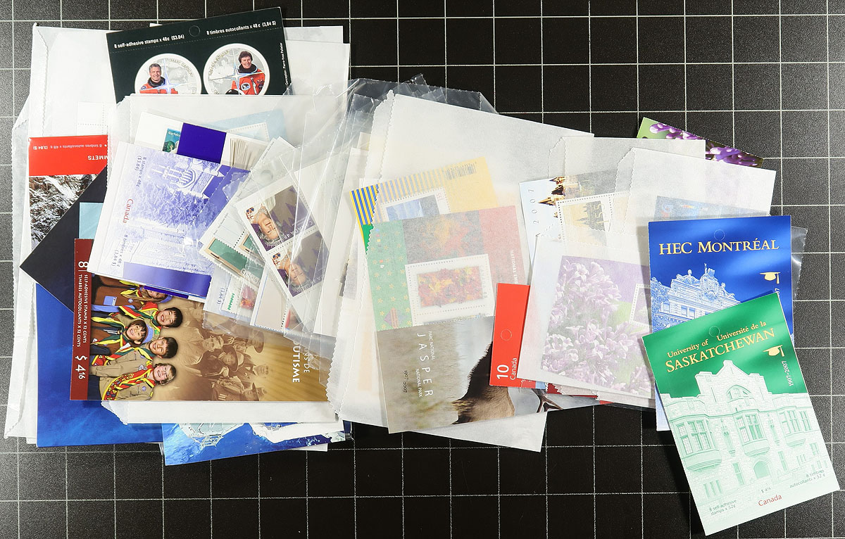 Modern Mint Holding. A large envelope, filled with Post Office ordered souvenir sheets, sheets and sealed matched set plate blocks, primarily from the 2002-2008 period. An excellent opportunity to keep what you need, and use the rest for mailing. Total face value =