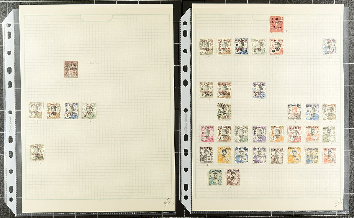 Group of roughly 150 mint and used French Offices in China, 1894-1920's, on 8 homemade pages, with better representation from Canton, Hoi Hao, Kouang-Tcheou, Tchong-King, Yunnan Fou and more. The majority of stamps have been identified by the owner, and includes current catalogue pricing, with some stamps and partial sets cataloguing in the $5 to $20 and up range. A nice group of these popular issues, a few faults on a few of the stamps, with all pages shown online. 2026 Scott US$703.00 =