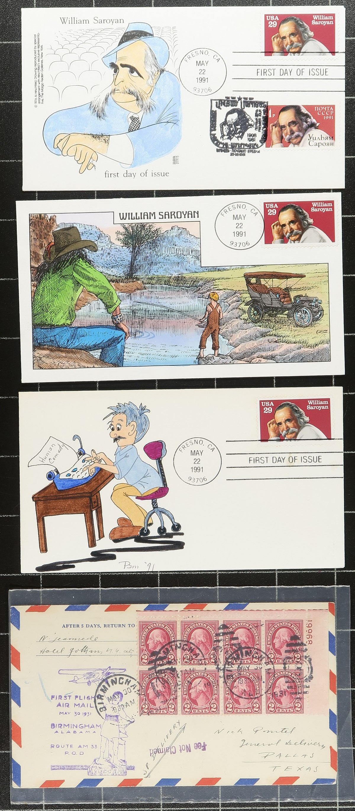 Group of roughly 150 United States covers, noting a good range of material including first day covers (including hand drawn/painted cachets), first flight covers, event covers, paquebot covers, commemorative covers, space related post cards, and more. The majority of material tends to range from the 1930's to the 1990's, with material possible on either side of the given range. A nice grouping that should appeal to cover collectors, or dealers for interesting dollar box items. Estimate =