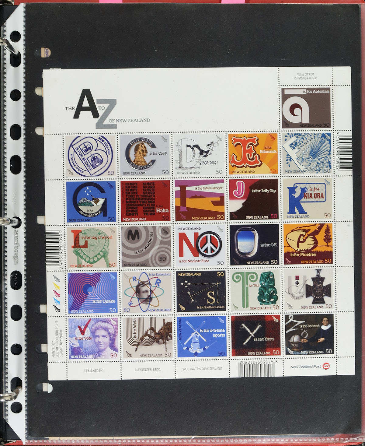 Large collection of mint and used New Zealand, 1880's-2010's, containing a few thousand stamps, in roughly 100 double sided Vario-style stockpages housed in a thick binder. The collection begins with a run of used singles, sets, and partial sets, generally ranging from the 1880's up to the early 2000's, and then continues with a mint portion (which appears to be the majority of this collection), from the 1980's up to the 2010's. The lot also includes, used officials, mint and used health issues, blocks, several souvenir sheets and more. We estimate several hundreds of dollars in face value material, with singles and sets cataloguing in the $5 to $15 and up range. A spot check indicated the mint material being hinged in 2-3 spots per stamp. Still a nice grouping for the New Zealand collector, or potential postal user. The Vario pages alone would retail a few hundred dollars in total. Our online photos show a small sample only. Estimate =