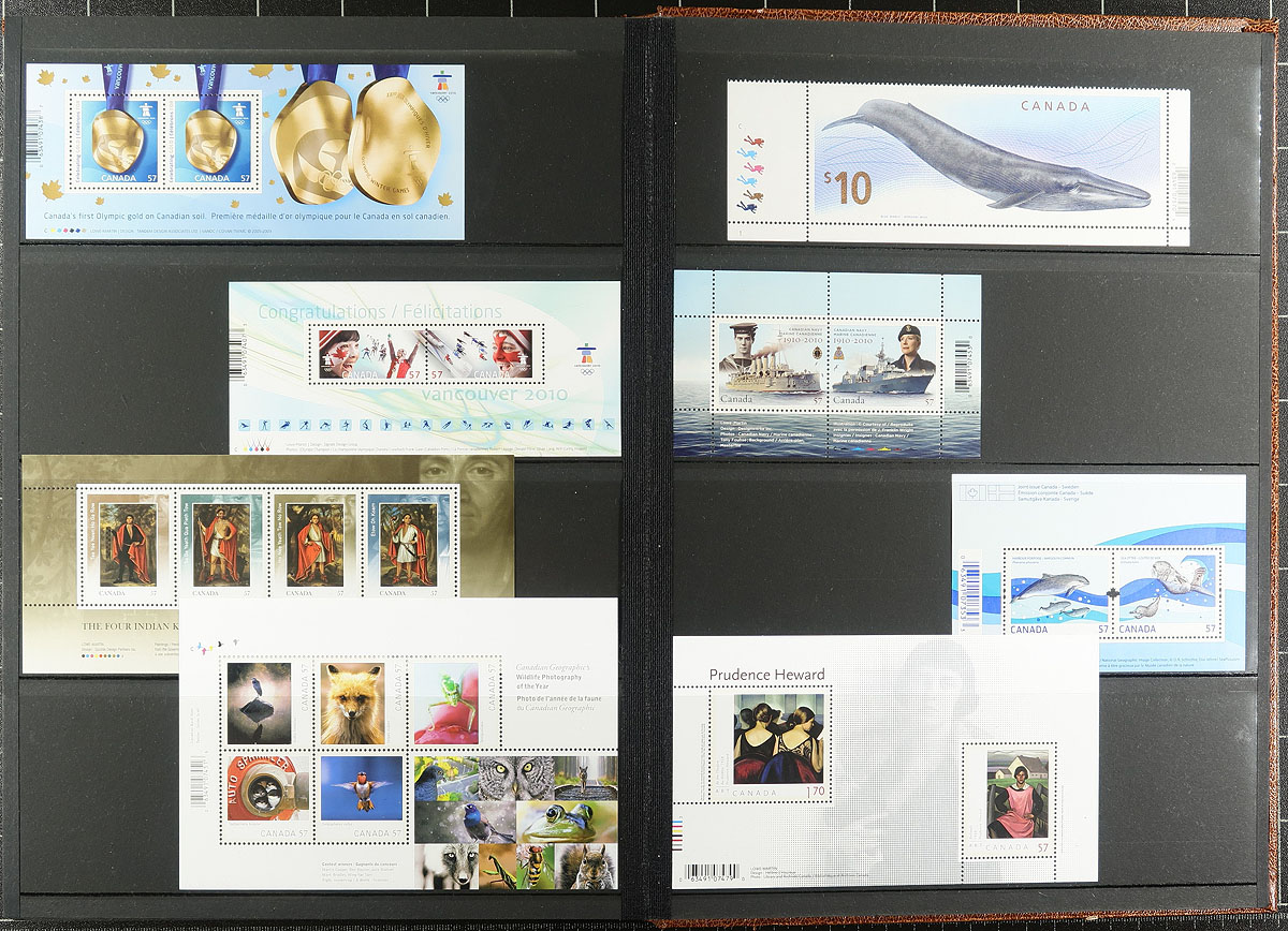 Modern Postage Medley. A duo of 32-page Unisafe brand stockbooks, containing a wild-ride of Never Hinged stamps from the 1970's to 2015 (with the vast majority being post-2000). Includes many better items such as souvenir sheets, panes, $10.00 Whale, $2.00 QEII Jubilee and MANY "P" stamps (even noticed a couple FDC). Conservatively valued for the total usable postage only. Total face value =