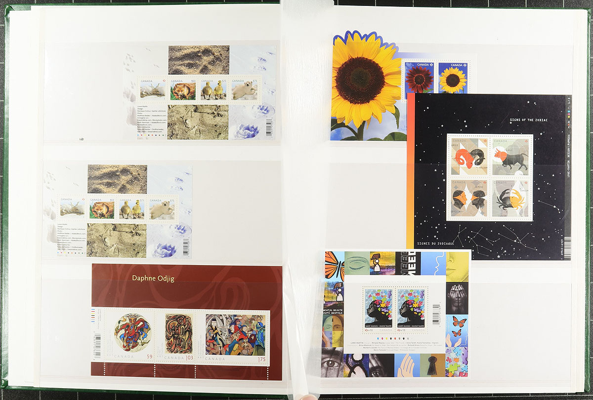 Modern Postage Medley. A duo of 32-page Unisafe brand stockbooks, containing a wild-ride of Never Hinged stamps from the 1970's to 2015 (with the vast majority being post-2000). Includes many better items such as souvenir sheets, panes, $10.00 Whale, $2.00 QEII Jubilee and MANY "P" stamps (even noticed a couple FDC). Conservatively valued for the total usable postage only. Total face value =