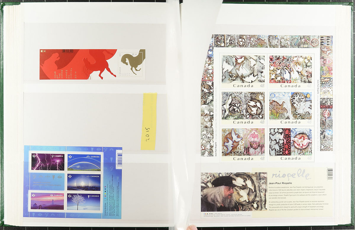 Modern Postage Medley. A duo of 32-page Unisafe brand stockbooks, containing a wild-ride of Never Hinged stamps from the 1970's to 2015 (with the vast majority being post-2000). Includes many better items such as souvenir sheets, panes, $10.00 Whale, $2.00 QEII Jubilee and MANY "P" stamps (even noticed a couple FDC). Conservatively valued for the total usable postage only. Total face value =