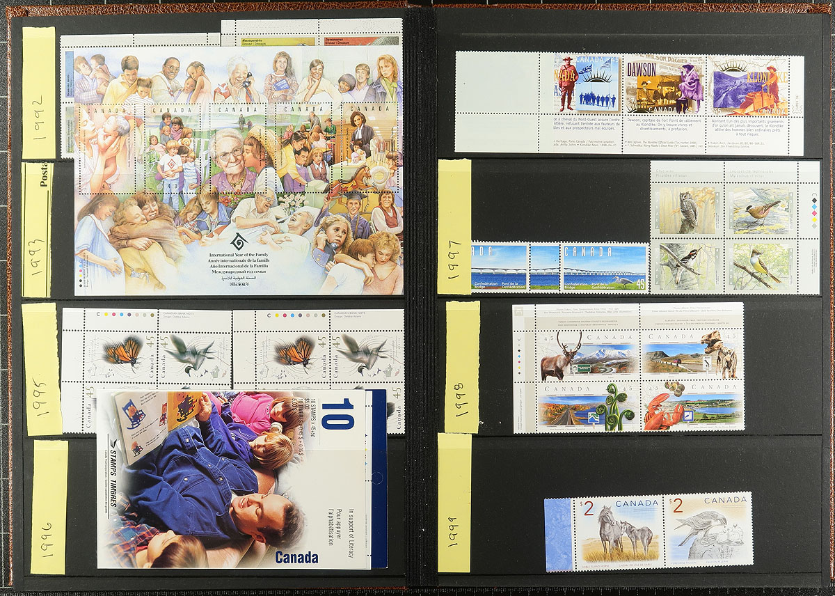 Modern Postage Medley. A duo of 32-page Unisafe brand stockbooks, containing a wild-ride of Never Hinged stamps from the 1970's to 2015 (with the vast majority being post-2000). Includes many better items such as souvenir sheets, panes, $10.00 Whale, $2.00 QEII Jubilee and MANY "P" stamps (even noticed a couple FDC). Conservatively valued for the total usable postage only. Total face value =