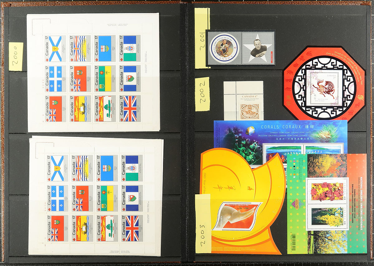 Modern Postage Medley. A duo of 32-page Unisafe brand stockbooks, containing a wild-ride of Never Hinged stamps from the 1970's to 2015 (with the vast majority being post-2000). Includes many better items such as souvenir sheets, panes, $10.00 Whale, $2.00 QEII Jubilee and MANY "P" stamps (even noticed a couple FDC). Conservatively valued for the total usable postage only. Total face value =