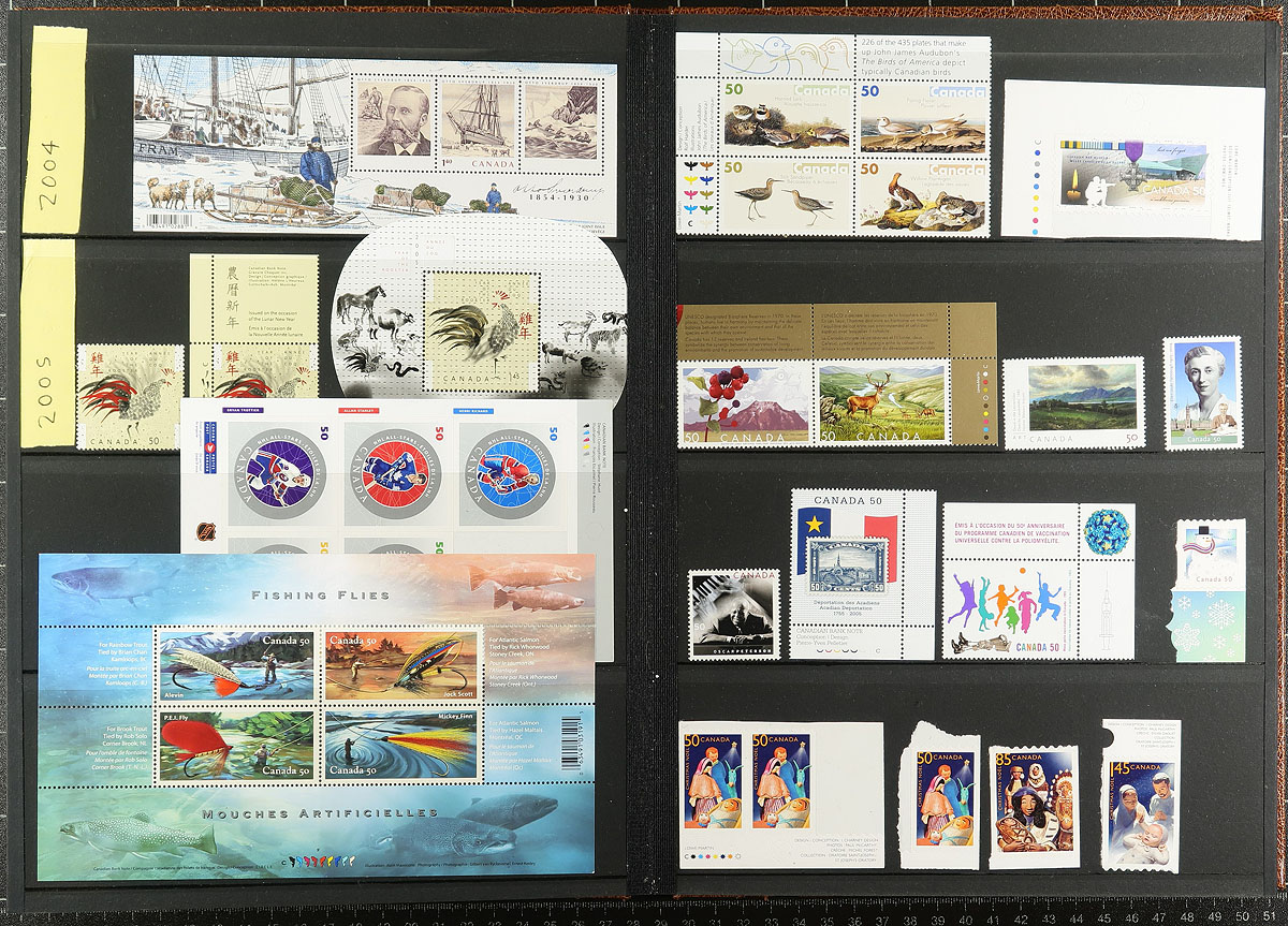 Modern Postage Medley. A duo of 32-page Unisafe brand stockbooks, containing a wild-ride of Never Hinged stamps from the 1970's to 2015 (with the vast majority being post-2000). Includes many better items such as souvenir sheets, panes, $10.00 Whale, $2.00 QEII Jubilee and MANY "P" stamps (even noticed a couple FDC). Conservatively valued for the total usable postage only. Total face value =