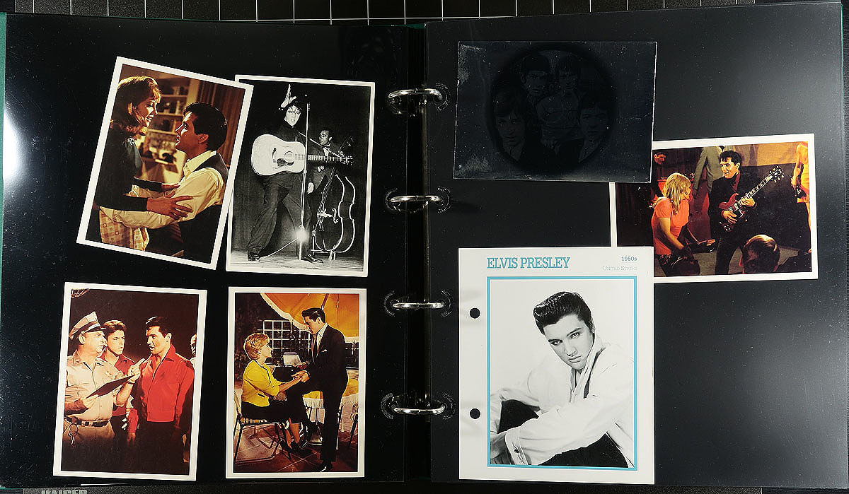 Part 2 -"Q"to "U" countries, with some "St. Vincent" in large 50 page full-sheet UniSafe brand four-ring binder with matching green slipcase (retail $140.00). Comprehensive, mostly mint Never Hinged collection of singles, sets (including complete sets where Elvis was only one of the artists being commemorated), souvenir sheets, and the occasional maxi-card / first day cover. Cleanly laid out, comprehensive and with enormous initial cost. Countries includes Sao Tome & Principe, Senegal, Sierra Leone, St. Vincent (including Grenadines and smaller islands!), Somalia, Sweden, Tajikistan, Tanzania, United States. This part of the collection includes a significant amount of philatelic and non-philatelic ephemera. Total of 15 stamps (+ over 100 American issues with some varieties and a complete "musicians" sheet), 47 souvenir sheets/sheetlets and 30 covers. Estimate =