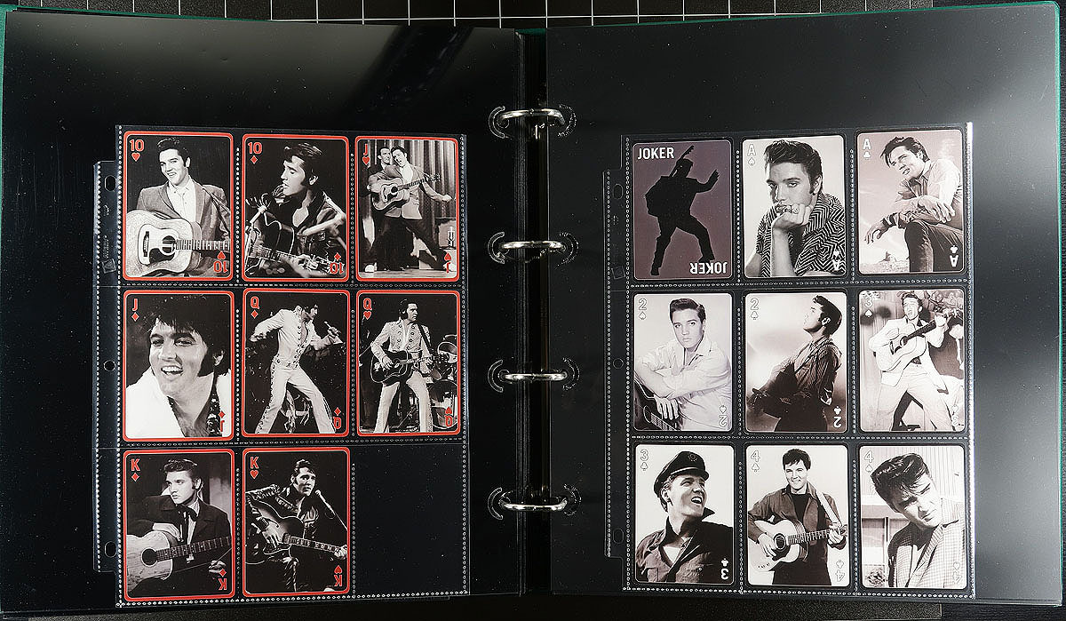 Part 2 -"Q"to "U" countries, with some "St. Vincent" in large 50 page full-sheet UniSafe brand four-ring binder with matching green slipcase (retail $140.00). Comprehensive, mostly mint Never Hinged collection of singles, sets (including complete sets where Elvis was only one of the artists being commemorated), souvenir sheets, and the occasional maxi-card / first day cover. Cleanly laid out, comprehensive and with enormous initial cost. Countries includes Sao Tome & Principe, Senegal, Sierra Leone, St. Vincent (including Grenadines and smaller islands!), Somalia, Sweden, Tajikistan, Tanzania, United States. This part of the collection includes a significant amount of philatelic and non-philatelic ephemera. Total of 15 stamps (+ over 100 American issues with some varieties and a complete "musicians" sheet), 47 souvenir sheets/sheetlets and 30 covers. Estimate =