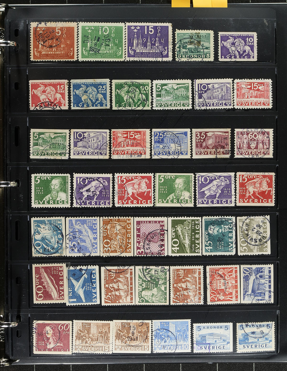Nice accumulation of used Sweden, 1858-2017, containing a few thousand stamps in roughly 40 double-sided Vario-style stock pages housed in a binder. The lot generally ranges from Scott #6/2797, with a few stamps beyond the given range, including coil and a few back of the book issues. A very nice lot for the postmark hunter as we noted various cds types with many "socked on the nose" town cancels. A spot check indicated a few stamps cataloguing in the $5 to $10 range, leaving better finds to the dedicated collector. Duplication up to 5-10 for some issues, with online photos showing a sampling. Overall fine to very fine. Estimate =