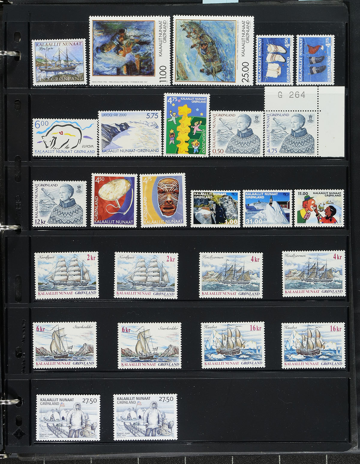 Lovely collection / accumulation of mint and used Greenland, 1938-2019, containing many hundreds of stamps in a stockbook and in several Vario pages in a binder. The lot generally ranges from Scott #1/827, with some issues having a mint and a used example, along with back of the book and some souvenir sheets. A spot check indicated a few singles, along with mint sets cataloguing in the $10 to $20 range, leaving better finds to the dedicated collector. Postmark interest includes bridge types, along with a few pictorial cancels. A nice lot from this very popular collecting country. Estimate =