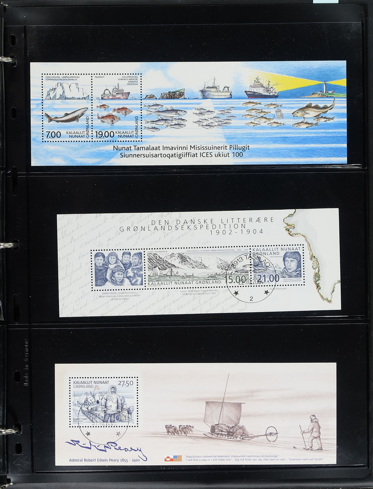 Lovely collection / accumulation of mint and used Greenland, 1938-2019, containing many hundreds of stamps in a stockbook and in several Vario pages in a binder. The lot generally ranges from Scott #1/827, with some issues having a mint and a used example, along with back of the book and some souvenir sheets. A spot check indicated a few singles, along with mint sets cataloguing in the $10 to $20 range, leaving better finds to the dedicated collector. Postmark interest includes bridge types, along with a few pictorial cancels. A nice lot from this very popular collecting country. Estimate =