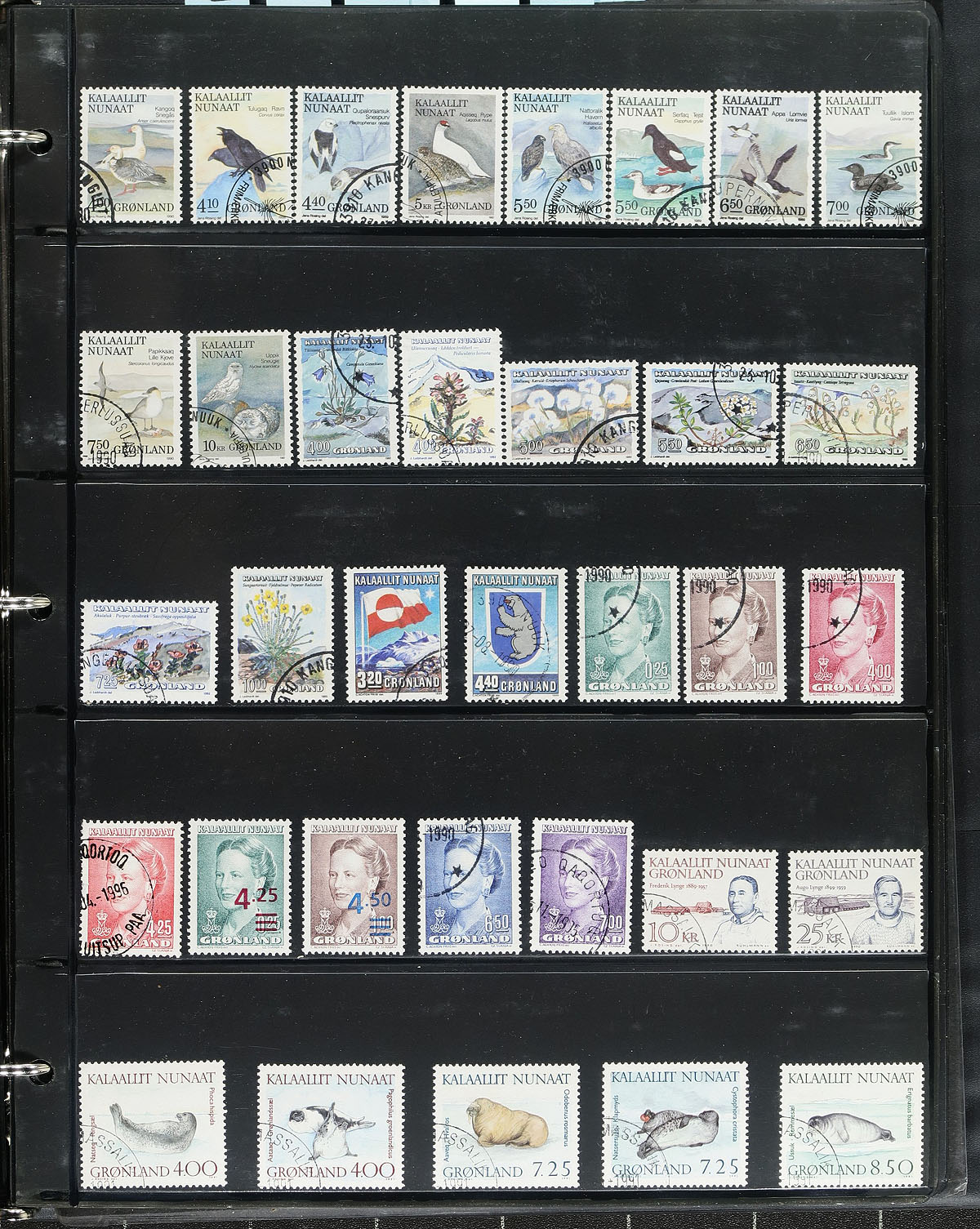 Lovely collection / accumulation of mint and used Greenland, 1938-2019, containing many hundreds of stamps in a stockbook and in several Vario pages in a binder. The lot generally ranges from Scott #1/827, with some issues having a mint and a used example, along with back of the book and some souvenir sheets. A spot check indicated a few singles, along with mint sets cataloguing in the $10 to $20 range, leaving better finds to the dedicated collector. Postmark interest includes bridge types, along with a few pictorial cancels. A nice lot from this very popular collecting country. Estimate =