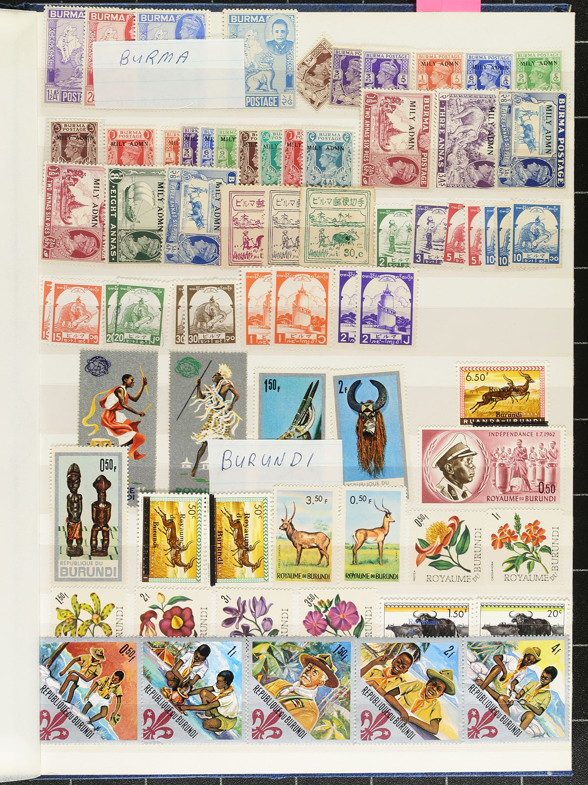Collection of mint worldwide stamps in 3 Briefmarken stockbooks, containing over 1,000 stamps, noting singles, sets, and blocks, from countries ranging from A to V (roughly 70 different issuing countries). Most of the material appears to range from the 1940s to the 1970's, with better representation from British Commonwealth, French Colonies, European countries and more. A spot check indicated a mixture of never hinged and lightly hinged stamps, with majority of the material appearing to catalogue in the $3 and under range. Still a nice lot for the mint worldwide or topical thematic collector. Estimate =