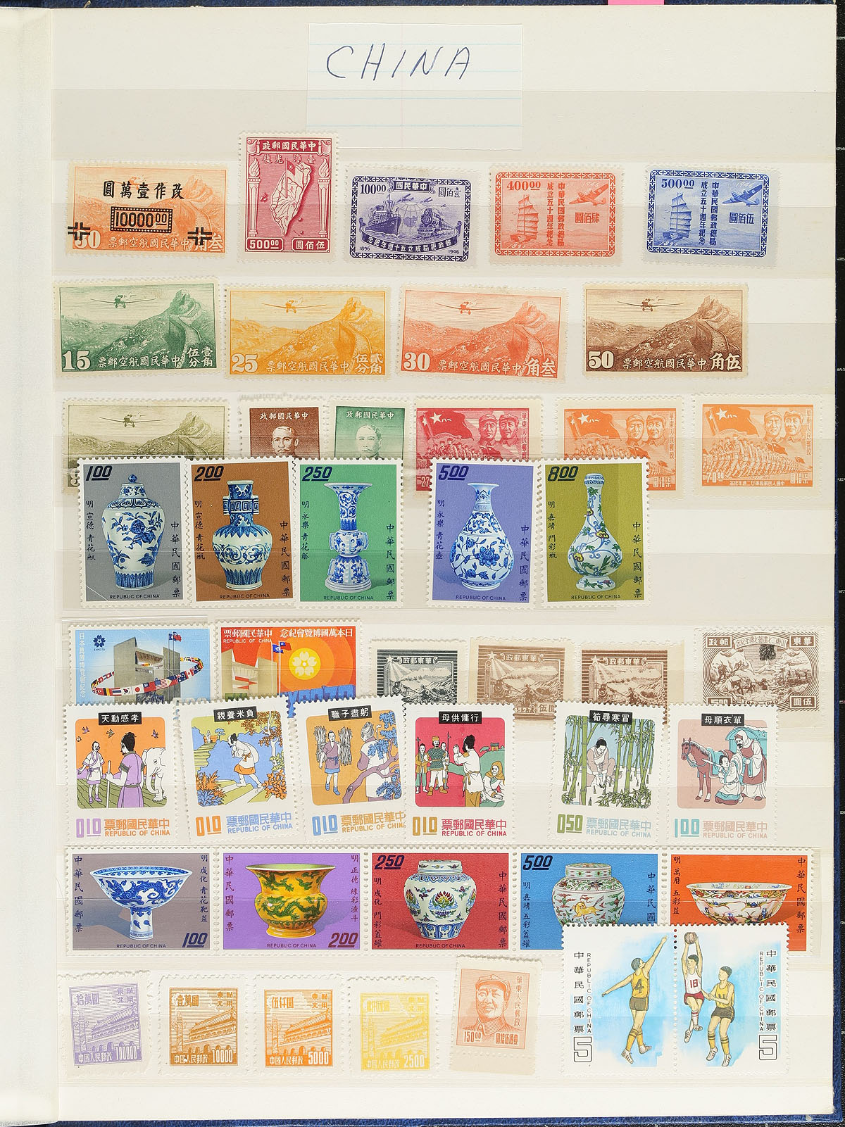Collection of mint worldwide stamps in 3 Briefmarken stockbooks, containing over 1,000 stamps, noting singles, sets, and blocks, from countries ranging from A to V (roughly 70 different issuing countries). Most of the material appears to range from the 1940s to the 1970's, with better representation from British Commonwealth, French Colonies, European countries and more. A spot check indicated a mixture of never hinged and lightly hinged stamps, with majority of the material appearing to catalogue in the $3 and under range. Still a nice lot for the mint worldwide or topical thematic collector. Estimate =