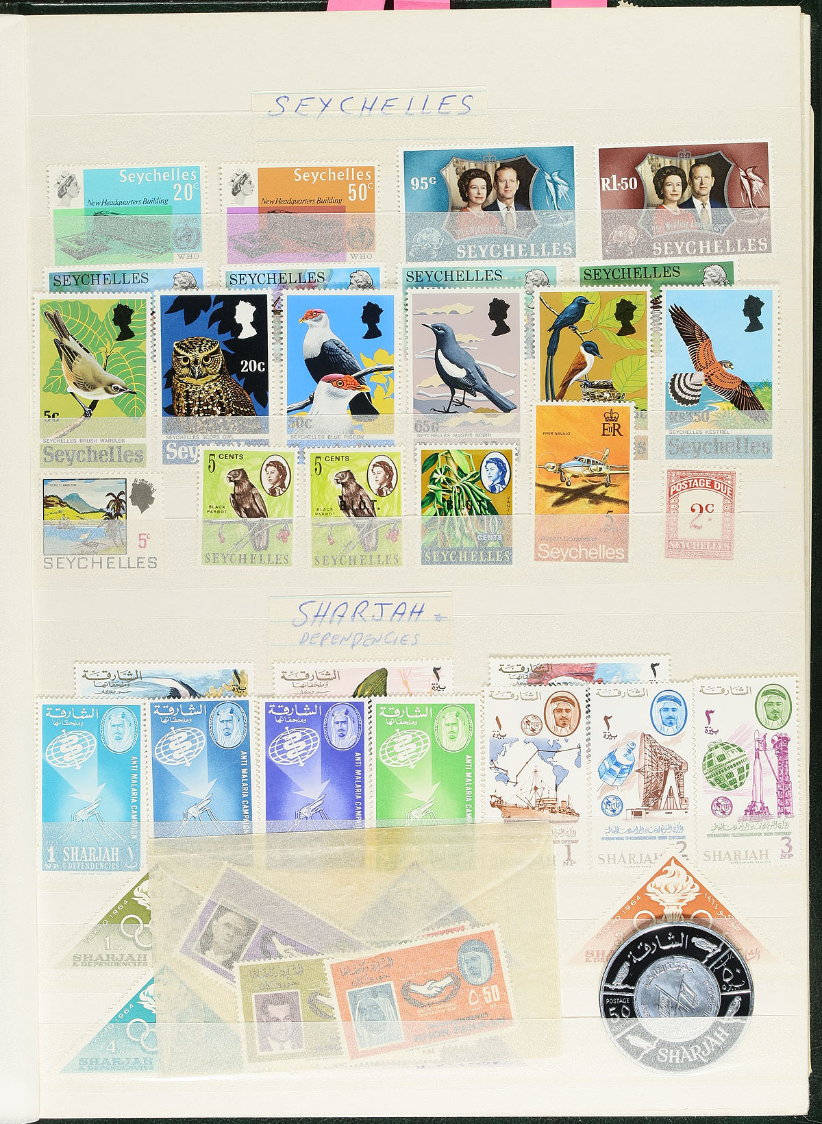 Collection of mint worldwide stamps in 3 Briefmarken stockbooks, containing over 1,000 stamps, noting singles, sets, and blocks, from countries ranging from A to V (roughly 70 different issuing countries). Most of the material appears to range from the 1940s to the 1970's, with better representation from British Commonwealth, French Colonies, European countries and more. A spot check indicated a mixture of never hinged and lightly hinged stamps, with majority of the material appearing to catalogue in the $3 and under range. Still a nice lot for the mint worldwide or topical thematic collector. Estimate =
