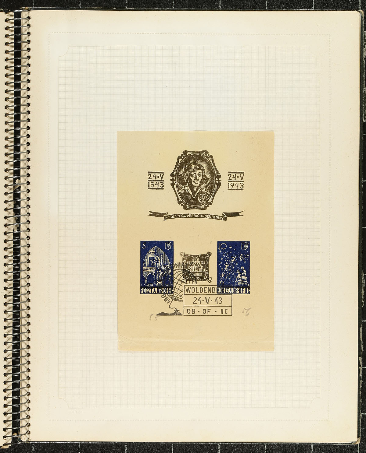 Visually powerful group of Polish POW Camp Woldenberf 1942-1944 camp issued provisional local stamps. The camp was located 1km from Woldenberg housed (at its peak) 5944 officers and 796 orderlies in 25 brick huts, over the 62 acre camp. These philatelically inspired issues have had their use speculated on over the years, as to whether they had actual use (beyond philatelic creation). This lot includes over 100 items including stamps, proof material, postmarks and covers. Listed in Michel catalogue. All neatly hinged in an old-time stamp book (which had travelled for many years with the original Jewish collector who acquired these). The largest assembly of this material we have offered! Estimate =