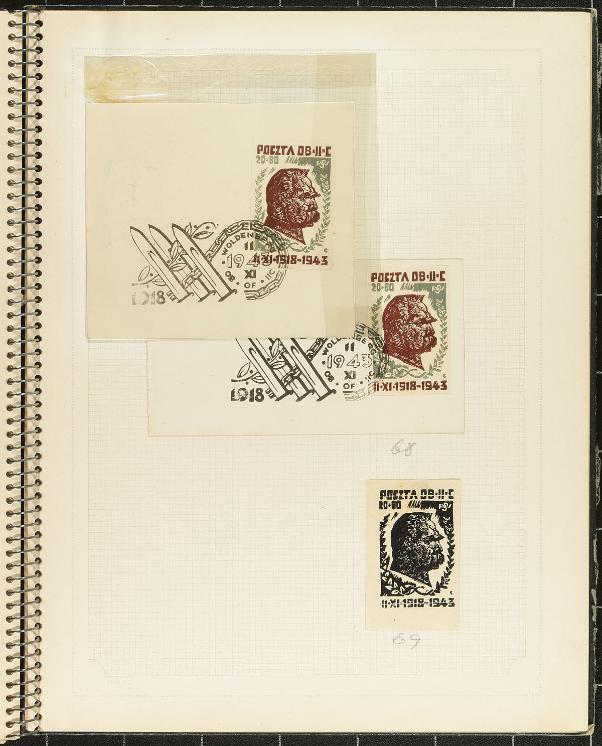 Visually powerful group of Polish POW Camp Woldenberf 1942-1944 camp issued provisional local stamps. The camp was located 1km from Woldenberg housed (at its peak) 5944 officers and 796 orderlies in 25 brick huts, over the 62 acre camp. These philatelically inspired issues have had their use speculated on over the years, as to whether they had actual use (beyond philatelic creation). This lot includes over 100 items including stamps, proof material, postmarks and covers. Listed in Michel catalogue. All neatly hinged in an old-time stamp book (which had travelled for many years with the original Jewish collector who acquired these). The largest assembly of this material we have offered! Estimate =