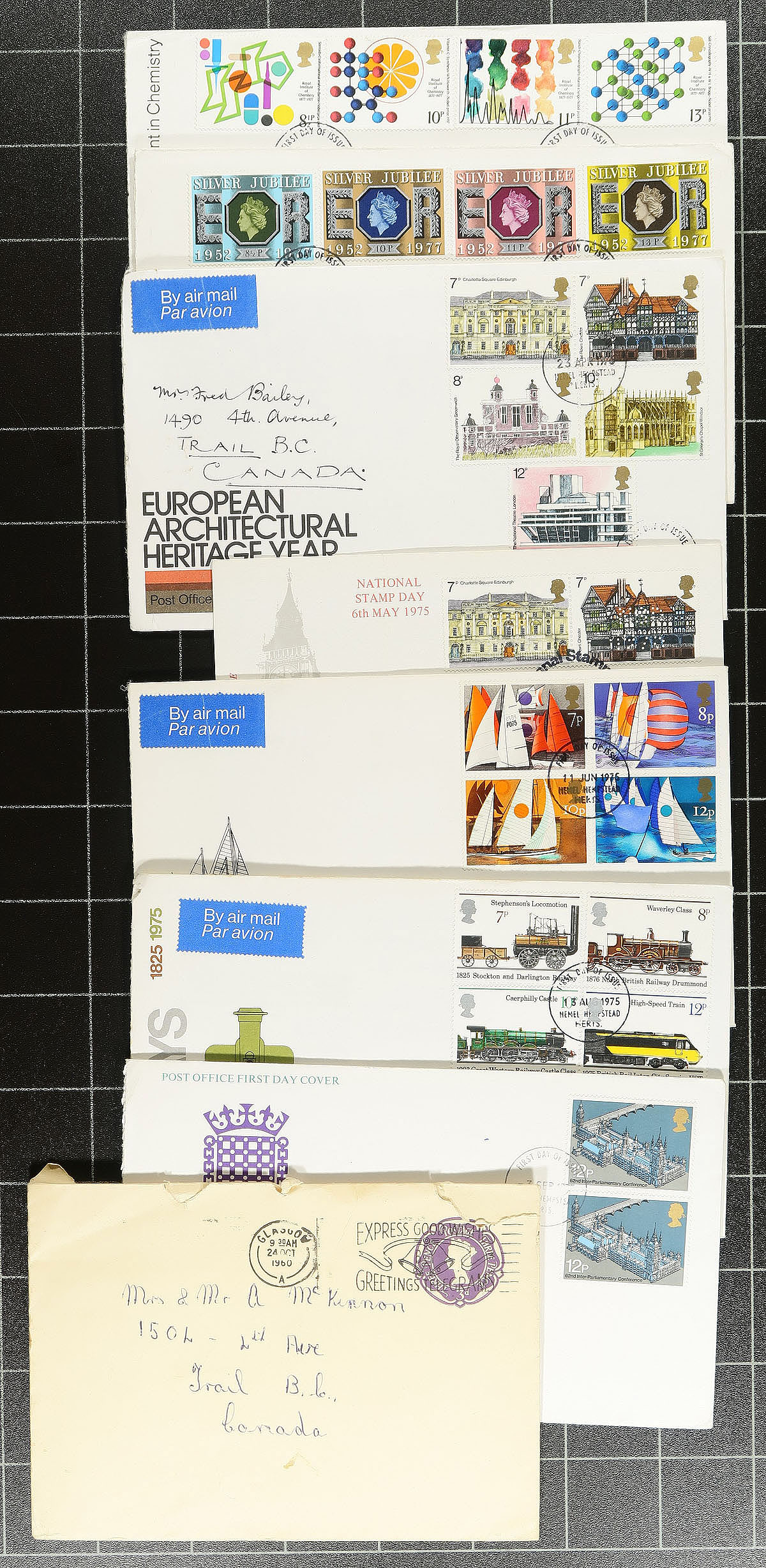 A fascinating clutch of 150 First Day Covers, show / event covers and commercial covers, with some postal stationery from Great Britain, Guernsey and Jersey. Starts with a (damaged) "Penny Black" on a large cover fragment from January 1841 and four pre-#33 "Penny Red" covers. There is a group of commercial and first day covers of the Guernsey occupation issues, the British first day covers are generally cacheted, with some potentially better issued between the 1953 Coronation and the early 1970’s. Noted a £5 Machin and some nice commemorative cancels. Perhaps the most intriguing item is a £5 Traveler’s Check from 1922 for the Bank of Montreal, London with both Canadian and British revenue stamps. Didn’t see anything after 1980. Estimate =