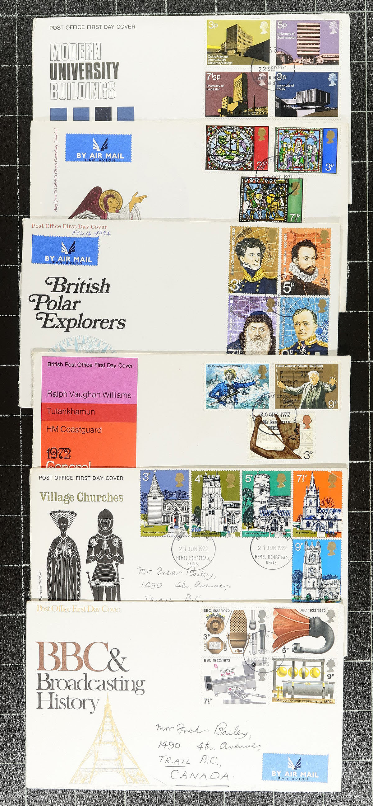 A fascinating clutch of 150 First Day Covers, show / event covers and commercial covers, with some postal stationery from Great Britain, Guernsey and Jersey. Starts with a (damaged) "Penny Black" on a large cover fragment from January 1841 and four pre-#33 "Penny Red" covers. There is a group of commercial and first day covers of the Guernsey occupation issues, the British first day covers are generally cacheted, with some potentially better issued between the 1953 Coronation and the early 1970’s. Noted a £5 Machin and some nice commemorative cancels. Perhaps the most intriguing item is a £5 Traveler’s Check from 1922 for the Bank of Montreal, London with both Canadian and British revenue stamps. Didn’t see anything after 1980. Estimate =