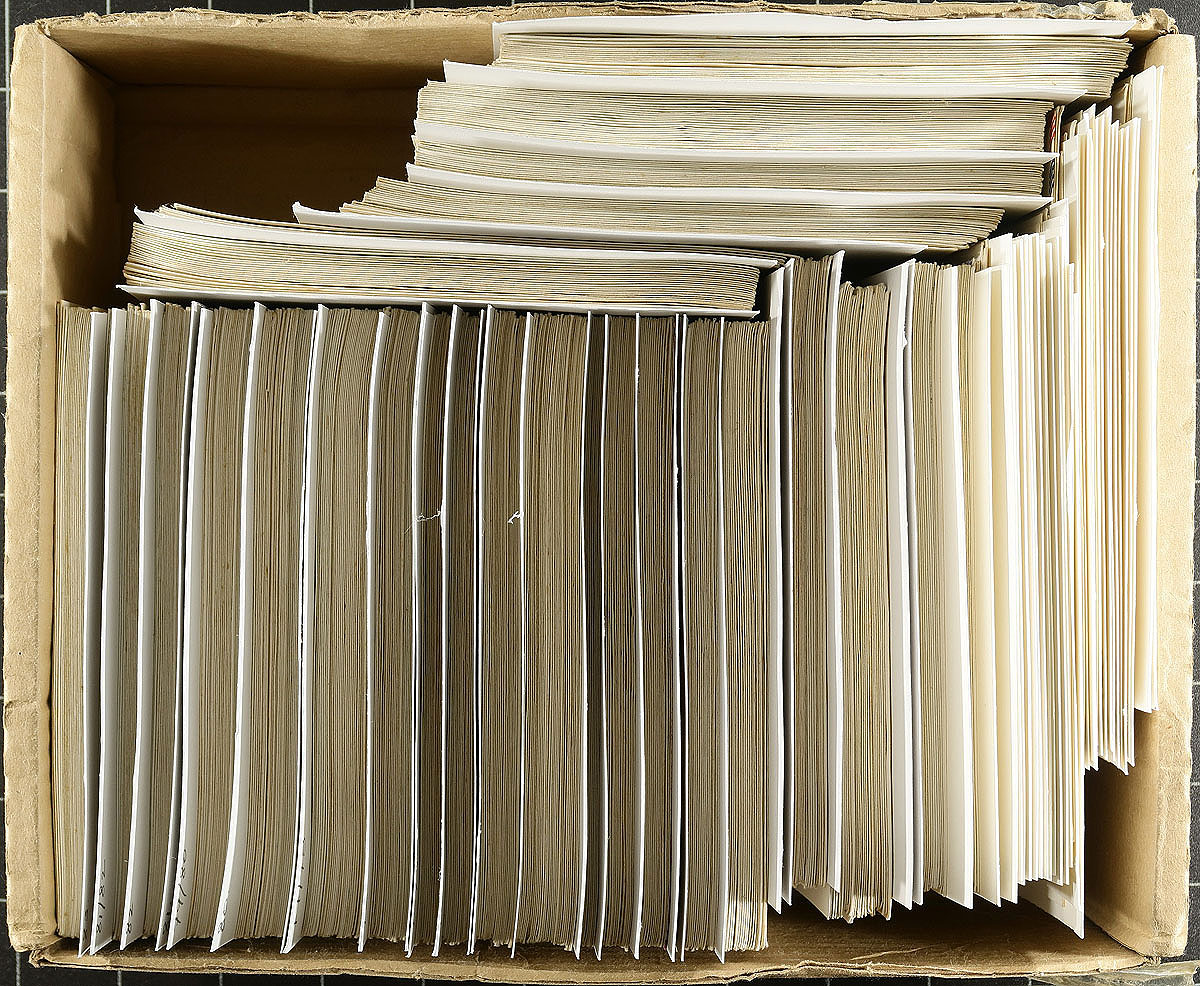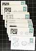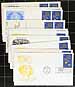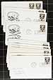 First Day Cover stock in three envelope boxes, with a nicely organized group of about 1200 covers. Includes a range of cachet makers (e.g. Artmaster, Artcraft, Fleetwood), as well as some unidentified. Many are unaddressed, a few are uncacheted. Includes up to about 20 of a type in places. A few have minor edge tone spots. Perfect for the collector looking to expand their UN FDC collection. Estimate =