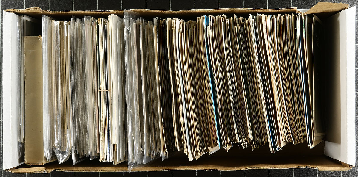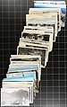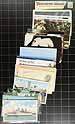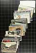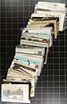 Postcard Estate Offering. Cardboard "dealer show box", filled with postcards (and a few covers), with seemingly not much "rhyme or reason", but with some strength in Europe, USA, greetings and even a pack of "National Museum Ottawa" Bird postcards. Offered as part of an estate of a postcard dealer, these being "works in progress". Likely 400-500 items in total. Estimate =