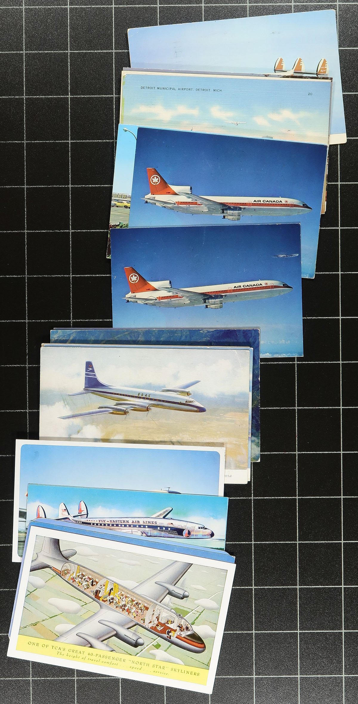 Postcard Estate Offering. Cardboard "dealer show box", filled with postcards (and a few covers), with seemingly not much "rhyme or reason", but with some strength in Europe, USA, greetings and even a pack of "National Museum Ottawa" Bird postcards. Offered as part of an estate of a postcard dealer, these being "works in progress". Likely 400-500 items in total. Estimate =