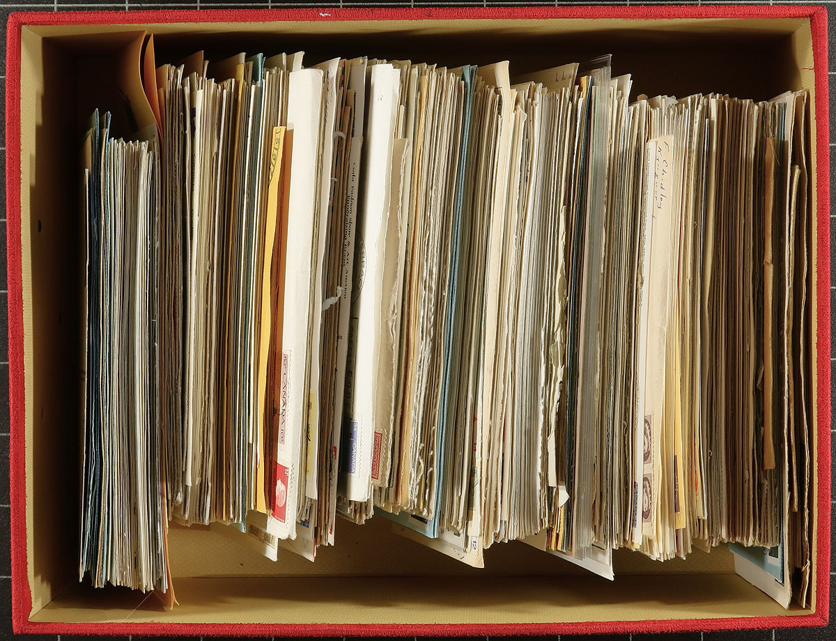 British Columbia Postmark Hoard #2. The second of three felt / cloth boxes (about the size of shoebox) containing approximately 400 covers with BC postmarks. Primarily QEII era covers, with earlier items mixed in throughout. A wealth of postmarks here, selected for (primarily) hand cancels (split ring, CDS, POCON, Retail Centre, machine). Well worth the estimate of 50c per cover. Estimate =
