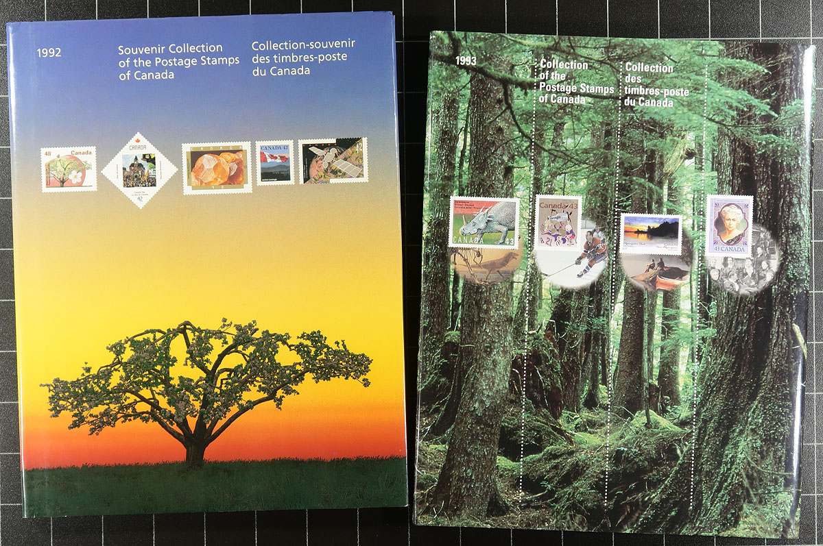 Annual Collections 1990-2004 inclusive, plus the Special Edition 2000 "Millenium" Hardcover book. These Canada Post publications contain the mint NH stamps, souvenir sheets and booklets for these 15 years (plus the Millenium, 16 total). This period saw the transition of size in books from the "9x11" format that had been in place since the 1970's to the larger format we know today. Total face value of the mint NH stamps, panes and souvenir sheets in the 16 volumes is $535.24. 2024 Unitrade =