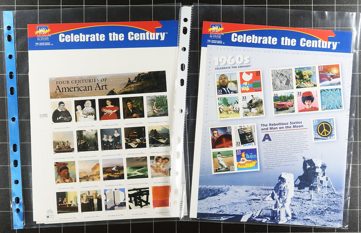Mostly Modern Mint Sheet Holding. A small stack of mostly modern US sheets, including Celebrate the Century, Comic Strip Classics, Classic American Aircraft etc, plus a smattering of older issues, including everything from Moon Landing to Elvis. Conservativly valued for the postage value alone. Total face value US$294.44 in Canadian Dollars =
