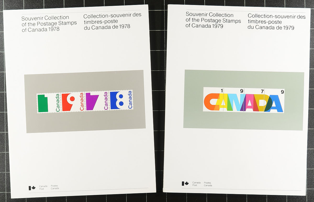 Annual Collections for 1974 to 1979. Complete 6 year run of the Unitrade listed Canada Post Annual Collections, from 1974 up to and including 1979 (Unitrade #17 to 22), all full size 8½"x 11" books. The key 1974 album has decent clean covers with the mint stamps arranged in mounts. A good start to a collection of these popular tomes, with the two scarcest albums taken care of (1974 and 1975). 2024 Unitrade =
