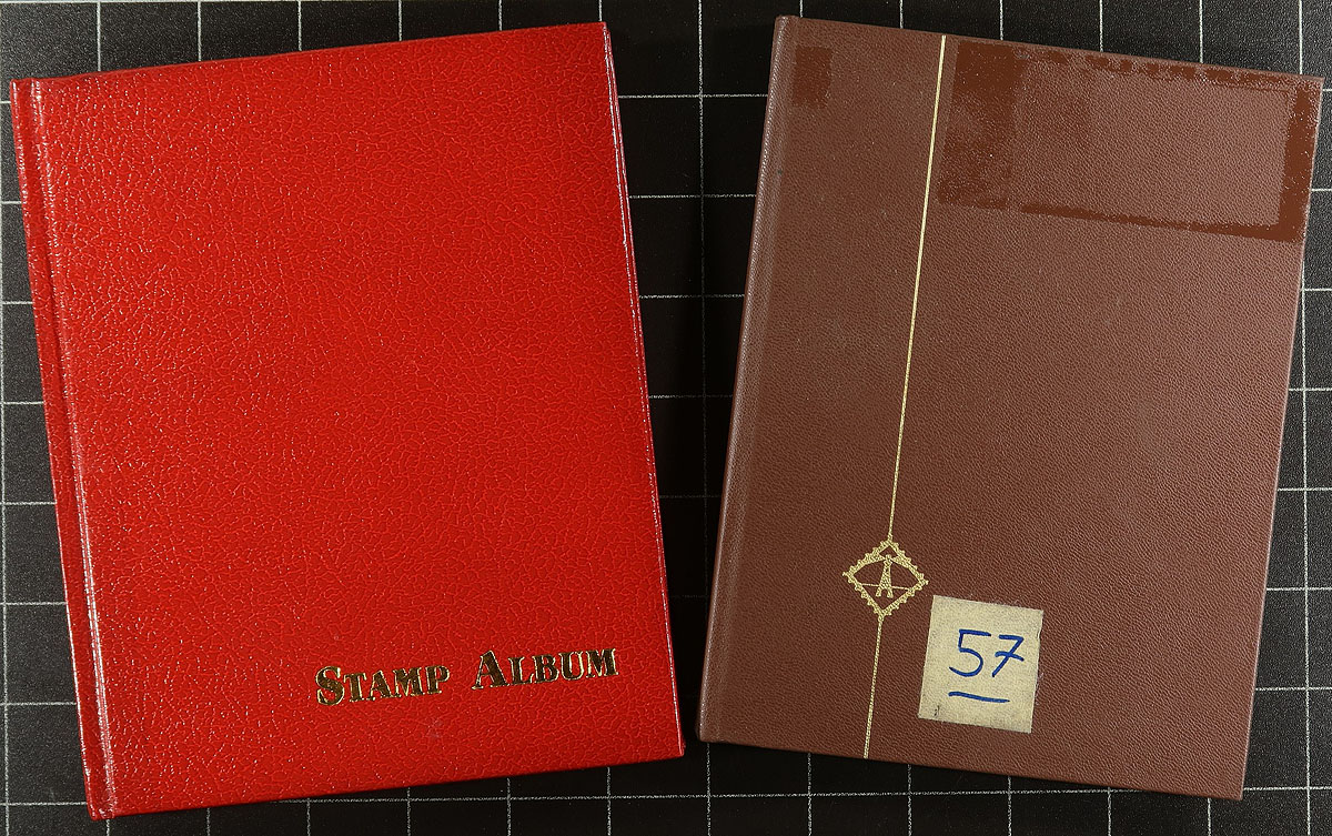 Group of 16 used stockbooks, of various configurations and sizes (white pages), along with a small group of used manila pages. Some pen and pencil notations inside the stockpages, still a useful group waiting for a new owner. Estimate =