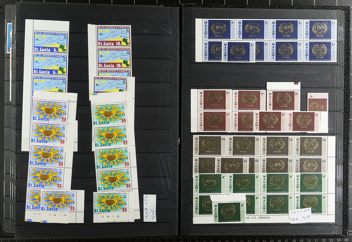 A "catch all" of mint material in a bankers box, with over 1,000 stamps in a variety of formats, including thematic packs, stockbooks, annual collections, glassines, blocks, sheets, and more. We note better representation from Austria, Great Britain, and Commonwealth countries, and more, generally ranging from the 1970's to the 1990's. A nice lot for the worldwide collector. Estimate =