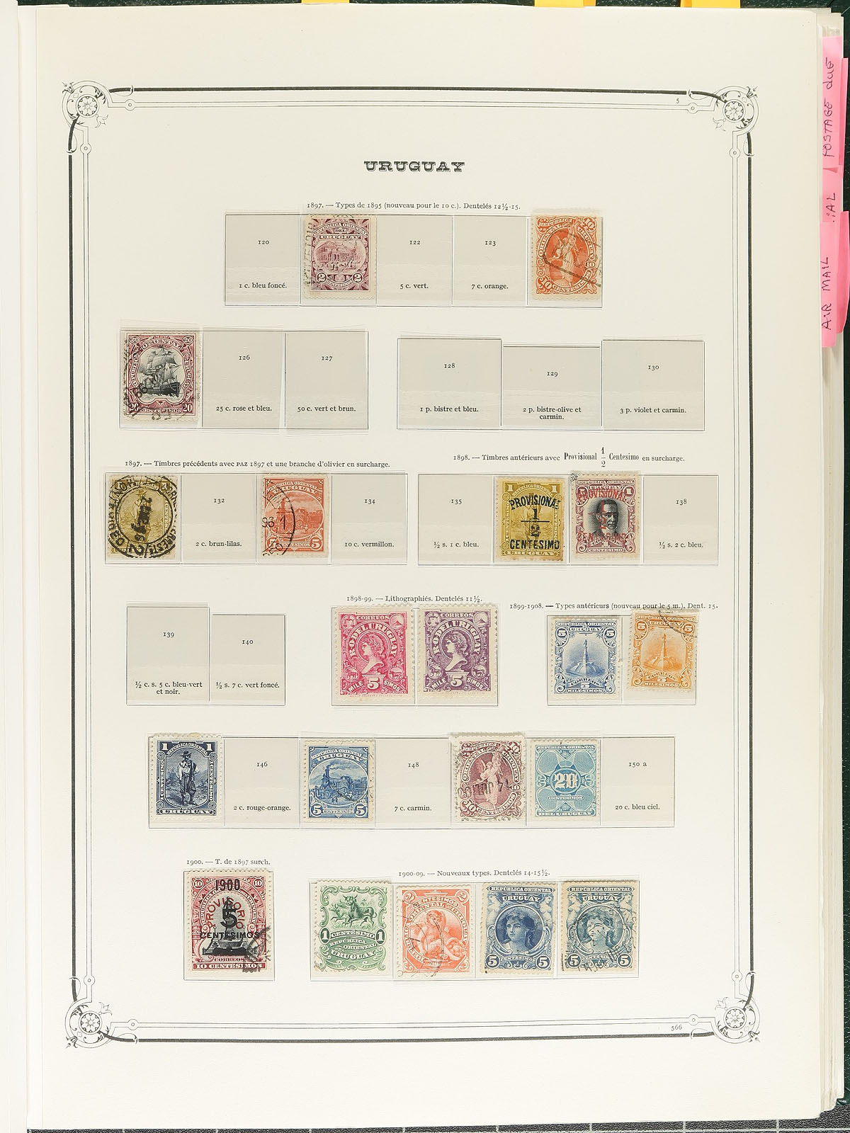 Clean collection of mint and used Uruguay, 1866-1974, containing roughly 800 stamps, well organized in a hingeless Yvert & Tellier Uruguay album. The collection generally ranges from Scott #29/906, and also includes selections of airmails, postage dues, and other back of the book material, and modern material on additional pages. A spot check indicated a few stamps and partial sets cataloguing in the $5 to $15 range. A nice collection that should be expanded, overall fine to very fine. Owner's older Scott US$2,024.00 =