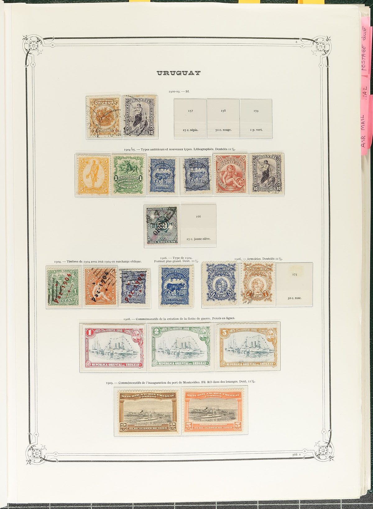 Clean collection of mint and used Uruguay, 1866-1974, containing roughly 800 stamps, well organized in a hingeless Yvert & Tellier Uruguay album. The collection generally ranges from Scott #29/906, and also includes selections of airmails, postage dues, and other back of the book material, and modern material on additional pages. A spot check indicated a few stamps and partial sets cataloguing in the $5 to $15 range. A nice collection that should be expanded, overall fine to very fine. Owner's older Scott US$2,024.00 =