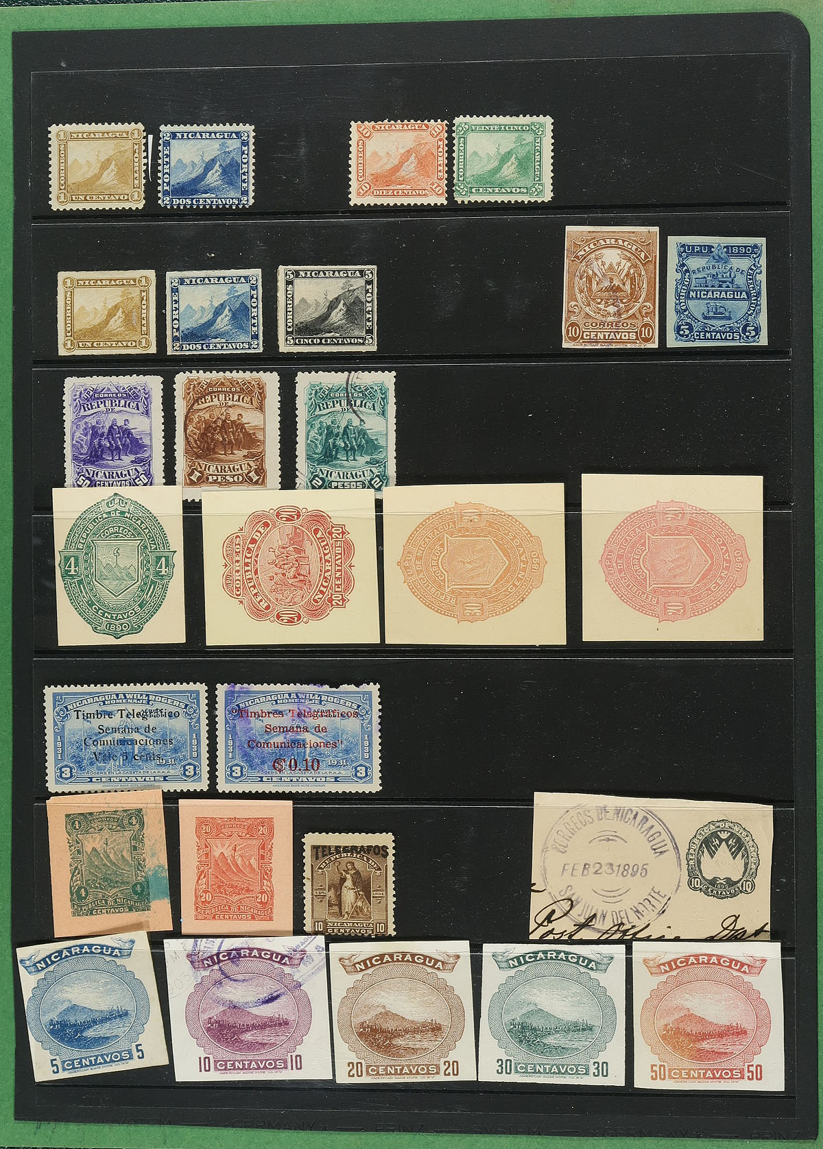 Clean collection of primarily mint Nicaragua, 1862-1976, containing roughly 875 stamps, well organized in a Scott Specialty Album (mostly in hingeless mounts). The collection generally ranges from Scott #3/1037, and also includes selections of airmails, postage dues, and other back of the book material, and modern material on additional pages. A spot check indicated a few stamps and partial sets cataloguing in the $5 to $20 and up range. Owner's older Scott catalogue value for the collection totals US$2,616.00 ($3531.00 CDN). A nice collection that should be expanded, overall fine to very fine. Estimate =