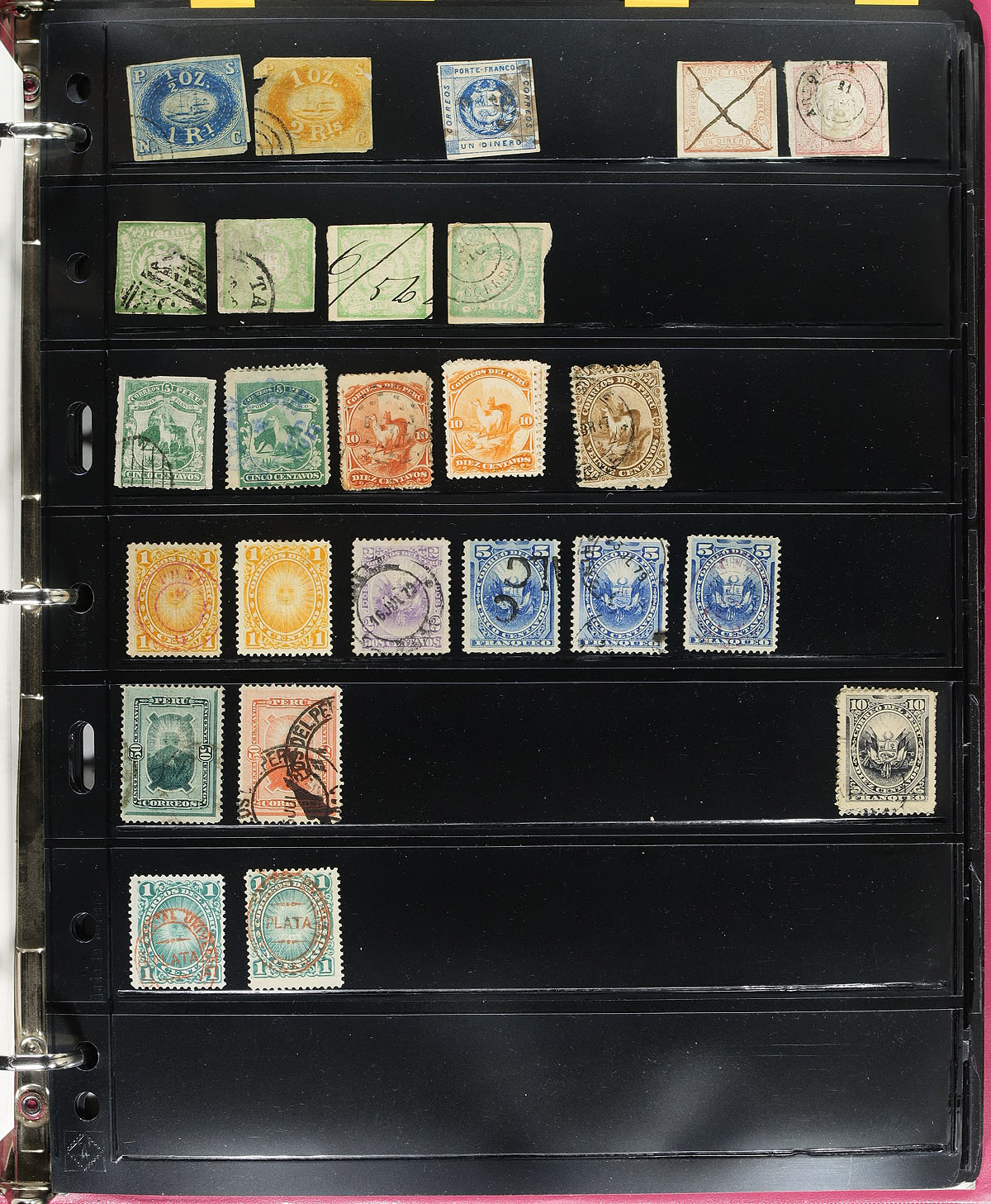 Collection / Accumulation of primarily used Peru, 1857-1975, containing roughly 750 in 15 double sided Vario stockpages. A nice starter group from this underappreciated collecting area, which includes a selection of "back of the book" issues. Owner's older Scott catalogue value for the lot totals US$960.00 ($1296.00 CDN). A few small faults noted with a few stamps, and a bit of duplication with a few issues. Estimate =